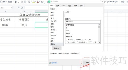 - 在数字选项中选择自定义,于右侧输入框填写:,最后点击确定完成设置。