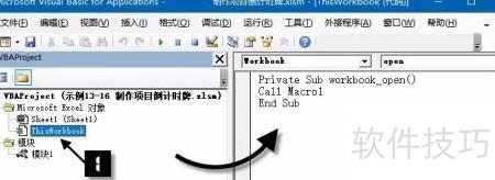 第四步:选中ThisWorkbook,打开右侧代码栏,输入指定代码,按F动倒计时显示。