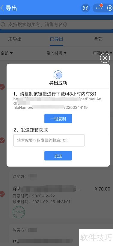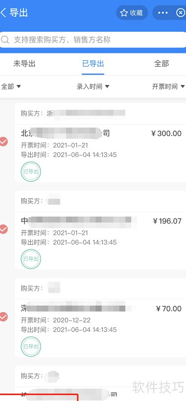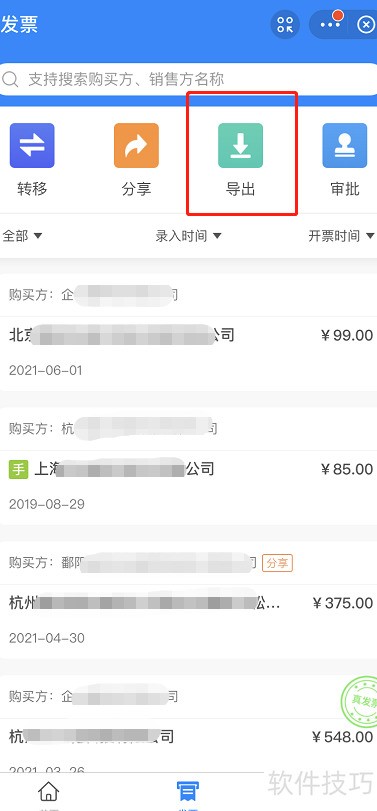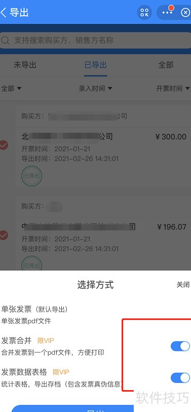 - 选中发票后点击导出即可打印