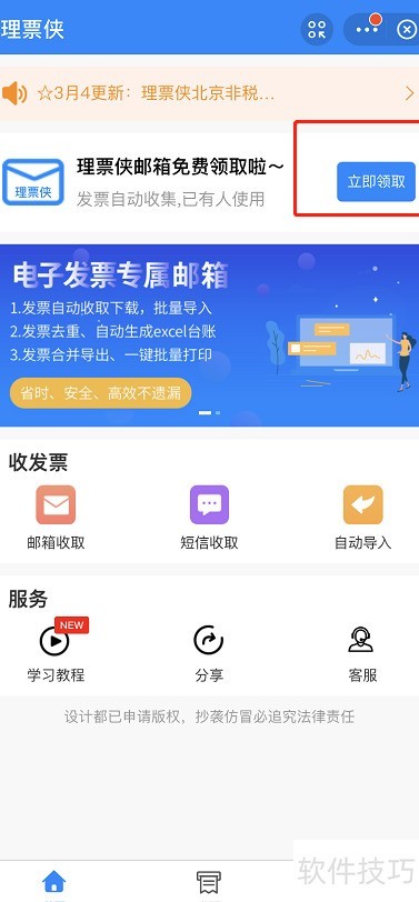 进入小程序,按照指引完成账号注册。这是一种专为管理电子发票设计的工具,类似于电子邮件服务。注册后,你可以将其需要查看的电子发票发送到这个邮箱中。如果你在开票时直接提供此邮箱给开票方,系统会自动接收并解析这些发票内容。这样可以大大简化流程,提高效率!