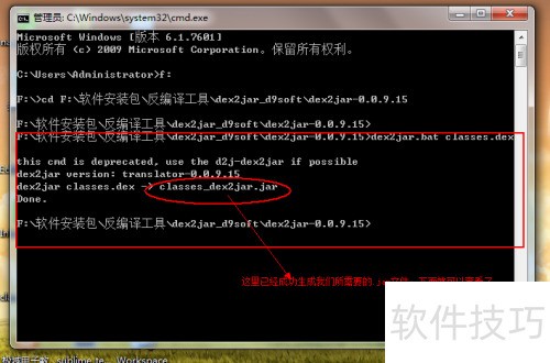 开始运行dexar.bat classes.dex,片刻后此步骤将生成所需的classes_dexar.jar文件。有人可能会好奇classes.jar是从何而来?请允许我简化解释:只需移动解压后的apk文件中的classes.dex到指定位置。