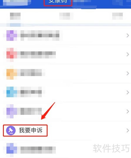 - 进入安康码页面,选择我要申诉功能。
