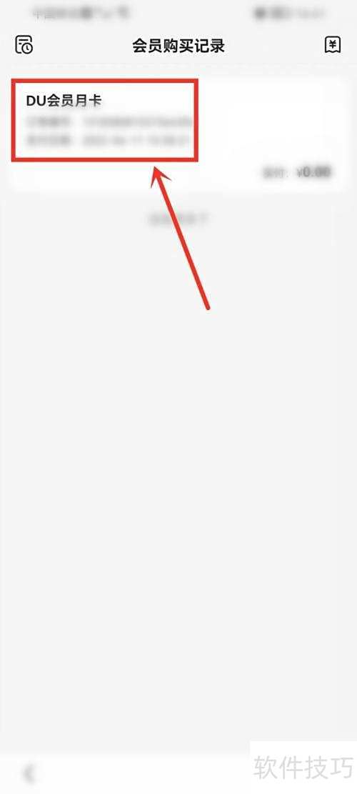 - 进入会员购买记录页面,可查看DU会员的购买详情。