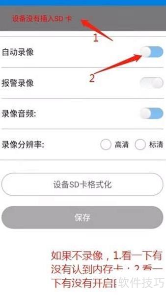 在设置中找到录像选项,打开自动录像功能。如问题依旧,确认内存卡状态并重新启动自动录像。