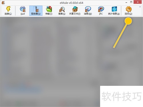 - 在eMule主界面,点击右上角的选项图标即可进入设置。