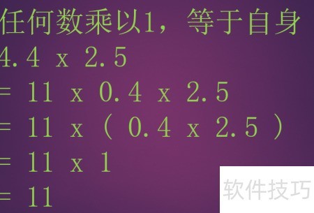 - 先看4.4乘以2.5,可将4.4拆成0.4与11的积,再分别计算,使运算更简便。