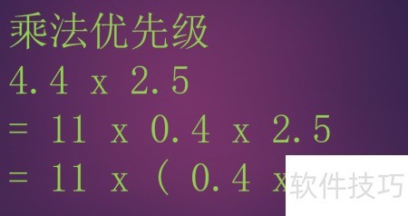 - 先计算2.5乘以4.4,因乘法运算优先级相同,可按顺序进行。