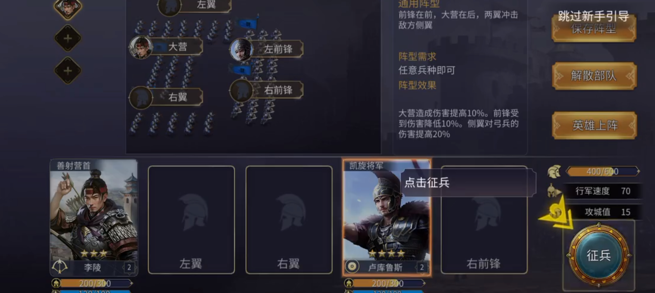 首先选用连弩兵作为初期部队,因其在游戏中具有卓越的清野和攻城能力。建议配合使用五星女王、六星秦皇与汉高祖等顶尖将领,以充分发挥连弩兵的优势。