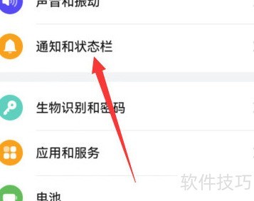 - 进入设置,选择通知和状态栏选项即可打开相关界面。
