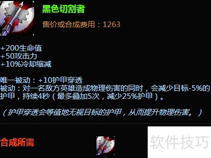 - 首件装备推荐黑切,搭配鞋子可减少10%技能冷却,实现技能频繁释放。