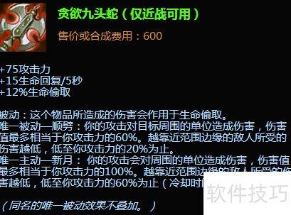 - 第四件选饮血剑,搭配九头蛇实现高爆发与高回复,助你在战场灵活穿梭。