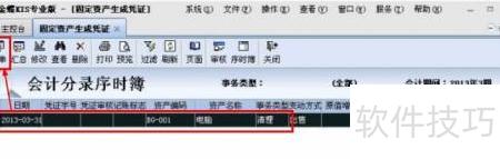 - 点击-,进入固定资产管理序时簿界面。