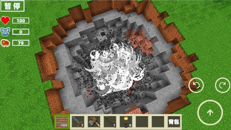 操控角色移动,运用道具开掘方块,搜集资源如矿石、木柴,采用兵器对打,亲手创作。