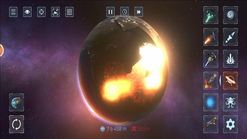 冲撞星球游戏是一款星球粉碎模拟器,你可使用核导弹、激光、小行星等多种兵器,对星球展开粉碎,在虚构太空场景中,尝试粉碎星球的奇特有趣与震撼感,画面十分的活泼音效也很真切,适合宣泄感情来这里渡过休闲的时光。