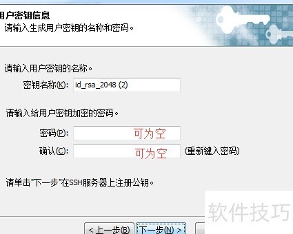 - 输入密钥加密密码,可不填。