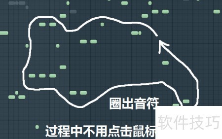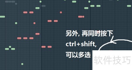 - 若要额外圈选一组音符,可按住 Ctrl+Shift 键,重复前述操作即可完成多选。