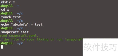 - 执行 snapcraft init 命令后,当前目录将生成一个名为 snapcraft.yaml 的配置文件。