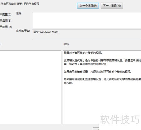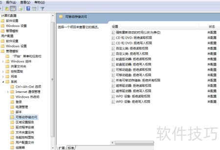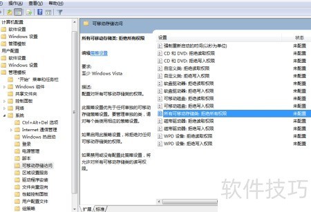 - 在右侧窗口查找并选择所有可移动存储类:拒绝所有权限选项。