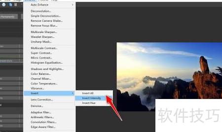 - 依次点击增强菜单,选择反相,然后点击反相强度即可完成操作。
