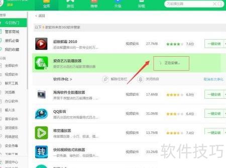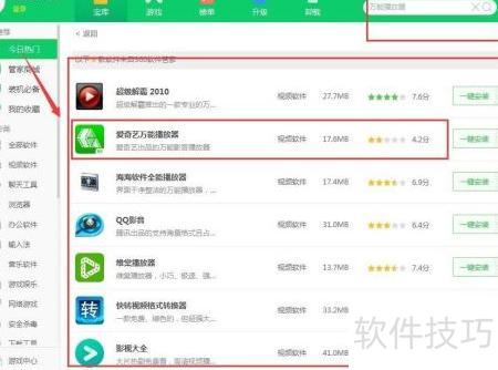 在件管家左侧菜单栏找到并点击“搜索”,然后在搜索框中输入“万能播放器”进行查询。搜索结果显示可能有多项与你所需功能相关的应用,通常最多会展示结果。根据你的具体需求选择合适的播放软件进行下载和安装即可。