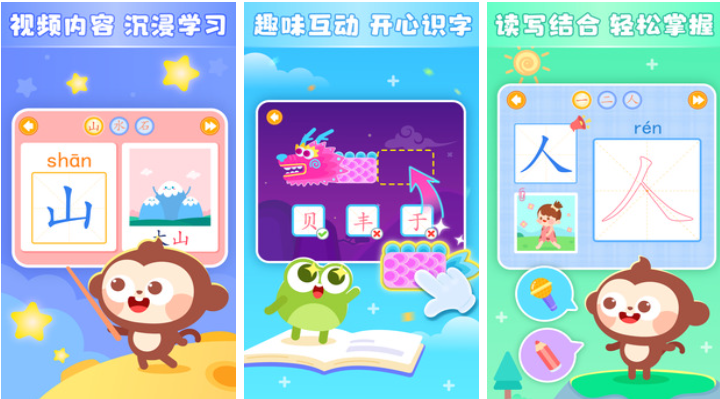 想要认知更多汉字的小宝宝们一定要尝试多多学汉字!本作就是专门让孩子们领悟汉字精髓的免费手游,有着超前的汉字互动性质和愉快的气氛渲染,超级呆萌的猴子和青蛙动物NPC会成为你的老师,认真跟随NPC学习各种汉字可以丰富孩子的汉字储备。游戏玩法各异,互动性也十分扎实,绝对值得你试一试!