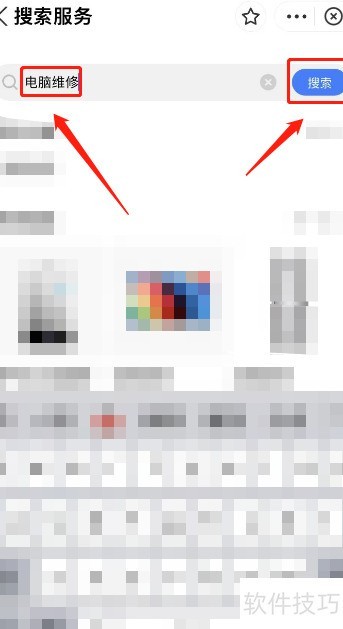 - 打开搜索功能,输入电脑维修后点击搜索按钮。