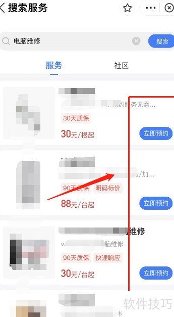 - 打开搜索服务,查找附近维修点并立即预约。