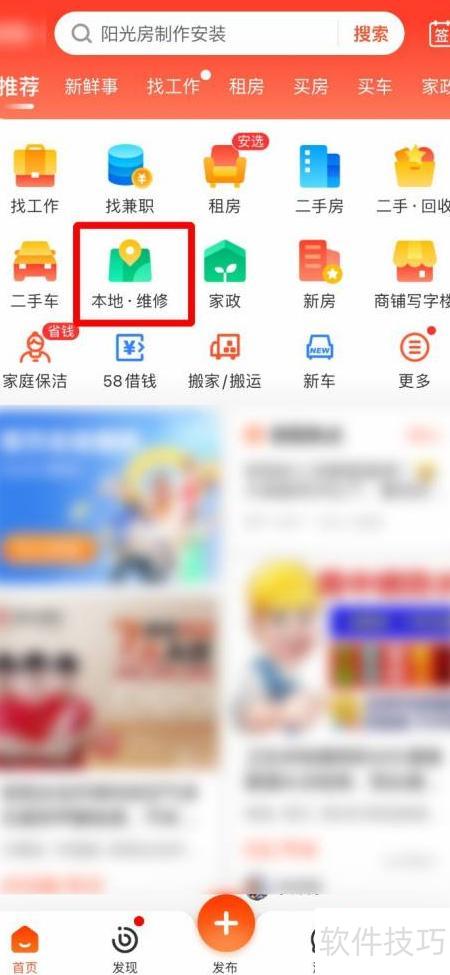 - 进入58同城应用,选择菜单里的本地维修选项。