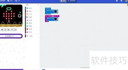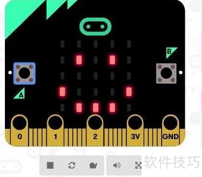 5、 进入Micro:bit官方网站的编程平台(图中所示为亚博智能提供的离线编辑器界面,官网在线页面布局类似,但需保持网络连接。相较而言,亚博智能编辑器具备一个关键优势:可实时调试Micro:bit主控板,而官网工具需下载程序文件后才能运行测试,操作略显繁琐,DFROBOT的编辑器也支持该功能)。在代码区编写所需功能,例如设定设备启动时显示爱心图案,按下A键则呈现笑脸图标。编写完成后,可通过界面右侧的模拟仿真区域预览实际运行效果,便于及时调整和验证逻辑是否正确。整个过程直观便捷,适合快速开发与调试。