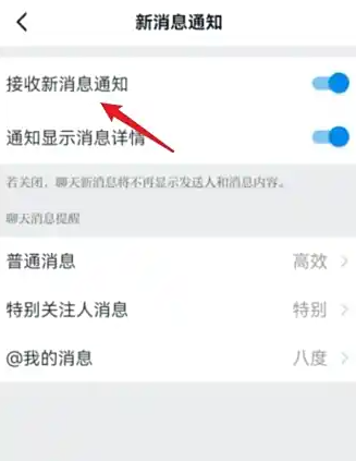 最后,关闭接收新消息通知开关按钮,就可以关闭消息通知