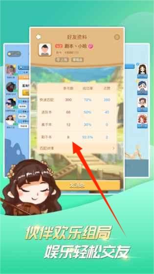 - 进入界面查看好友材料,根据各项资料抉择伙伴,欢畅组局进行互动。