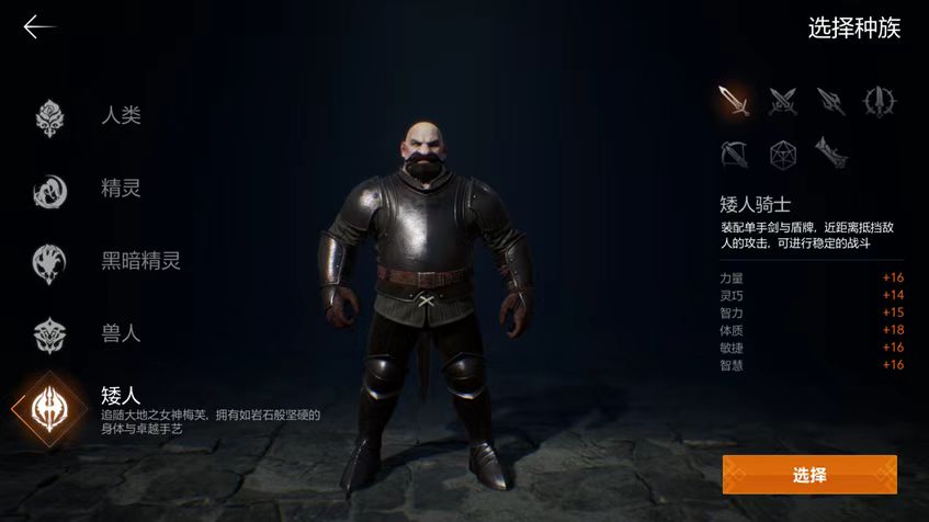 如今的游戏界开放了人类、精灵、黑暗精灵、矮人和兽人这五大种族供玩家自由选择。要成为矮人骑士,首先必须从矮人选起,接着便是成为矮人骑士的步骤。矮人骑士有着独特的装备偏好单手剑与盾牌,并擅长在近战中抵挡敌人的攻击,展现出稳定且强大的战斗能力。