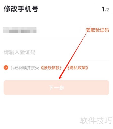 进入查博士二手车APP,找到修改手机号页,输入验证码继续。