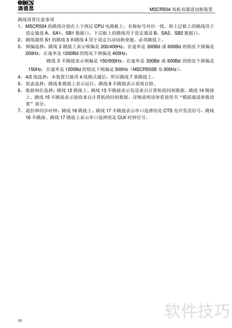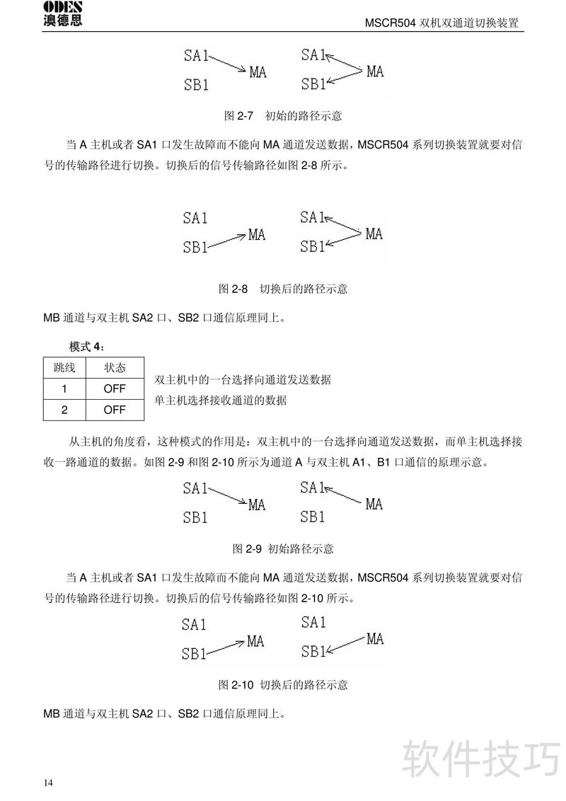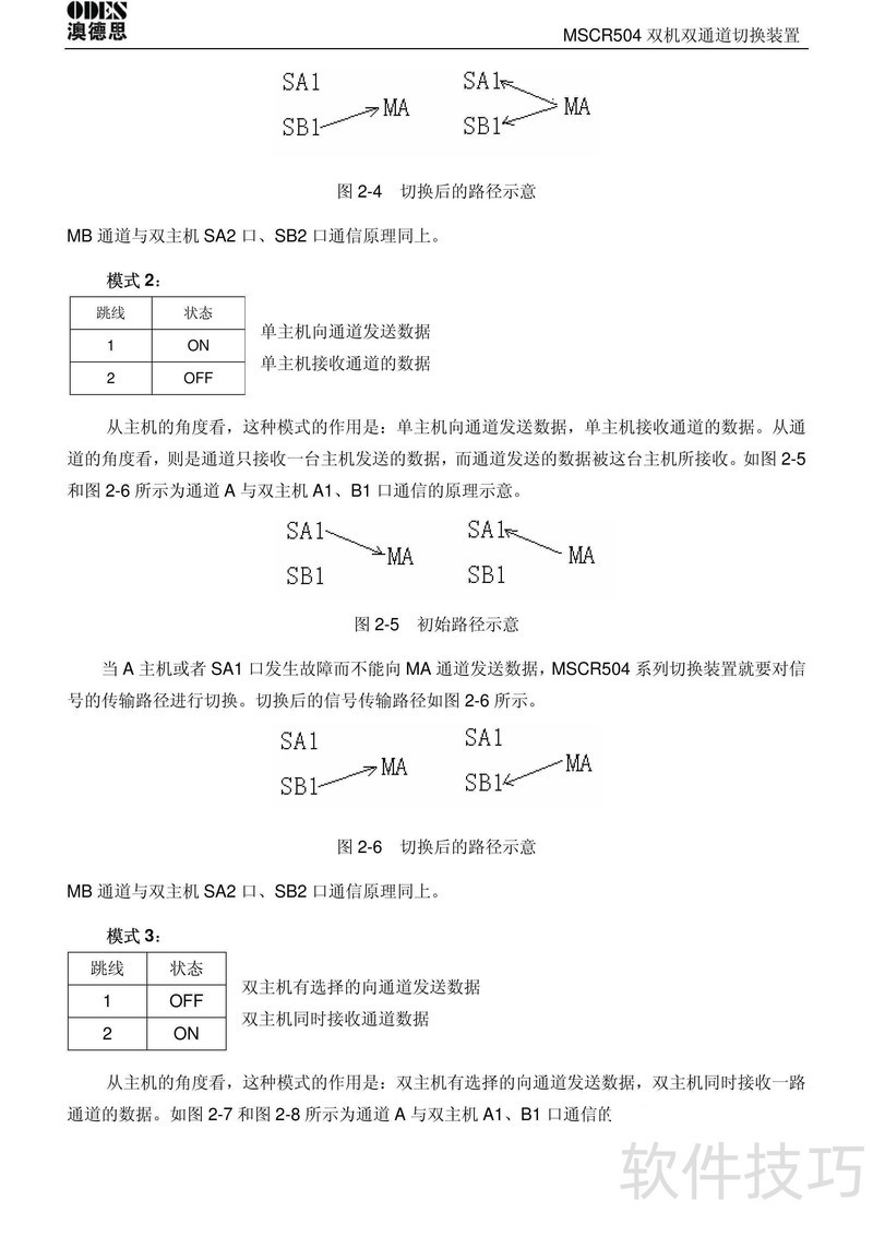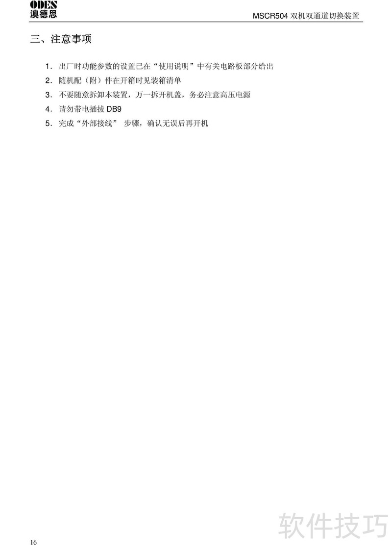 此文档为澳德思MSR-机双通道切换装置的操作指南与故障解决方案,旨在指导用户安全高效地运用和保养设备。