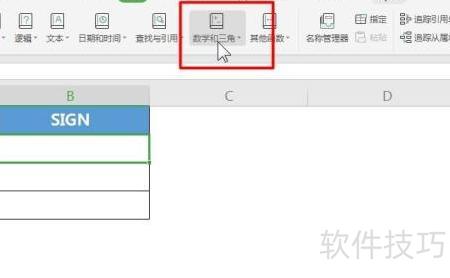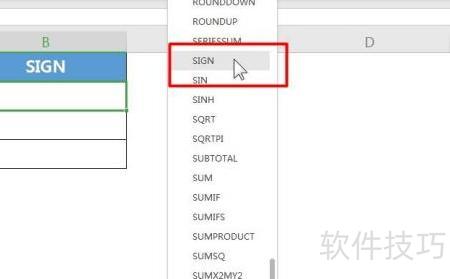 - 接着在公式-数学和三角函数列表中选择SIGN函数。