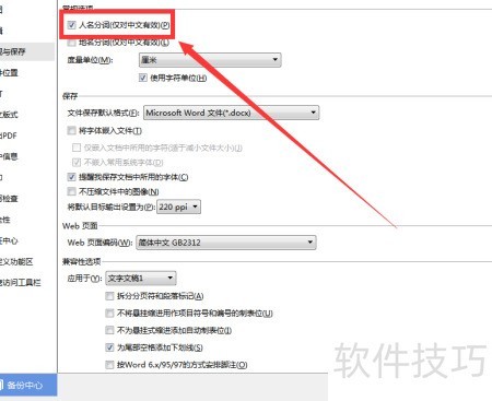 - 进入常规与保存设置,勾选对应复选框,即可开启WPS人名分词功能。