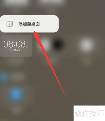 在华为手机中安装透明时钟插件,点击“添加”实现桌面定时器的透明化功能。