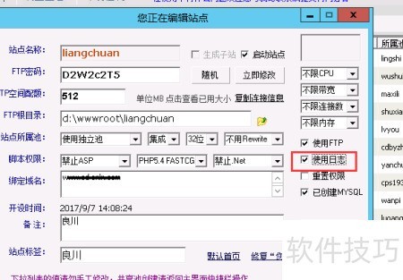 开启网站日志功能,请在建站助手中找到指定网站,并双击进行编辑。然后在侧边栏中启用“日志”选项,确认无误后再点击“保存”。系统会提示编辑任务完成。