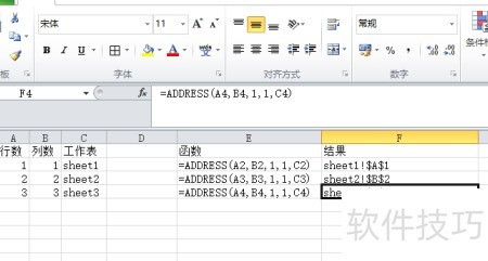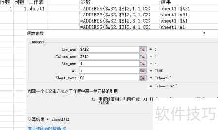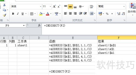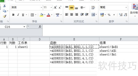 为了说明第三个参数的选择,可以重新定义表格中的单元格引用形式。当该参数依次取值为,对应的单元格引用形式分别为:$A$行列均绝对)、A$列相对行绝对)、$A列绝对行相对)、A行列均相对)。这种变化效果等同于在编辑函数时连续按F所实现的引用方式切换,直观展示了不同参数值对引用类型的影响。