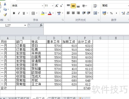 第一季度的工资表采用统一模板制作,每月工资总额位于第F列(F元格)。为确保每个季度的数据一致且便于管理和汇总,我们需要将这三个月各自的工资总额提取并汇总至一张新的统计表中。这样可以清晰地查看和管理整体薪资支出情况。