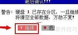 - 在最后确认!!!页面中选择Y继续,按回车键确认,操作所示。