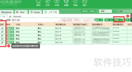 - 在主界面选中目标服务器,点击导出即可完成操作。