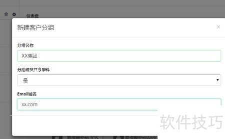 - 输入分组名称,勾选成员共享事件选项,并填写该组的Email域名。