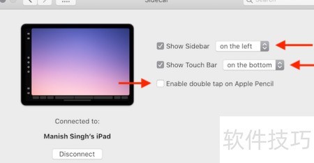 - 可在Mac的系统偏好设置中进入Sidecar选项,自定义iPad上的Sidecar界面布局与功能。