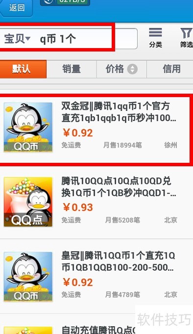 - 输入想买的商品,点击搜索,选中目标后点击即可购买。