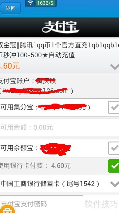- 旺信将自动跳转至支付宝,选择付款方式并输入密码,即可完成所选商品的购买。