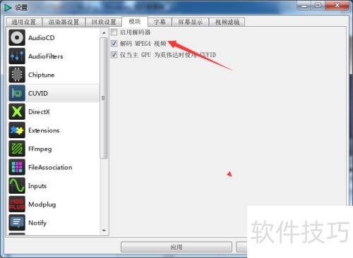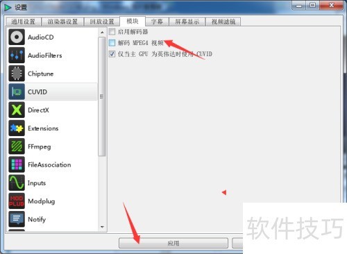 - 取消勾选解码MPEG视频后,点击应用即可。