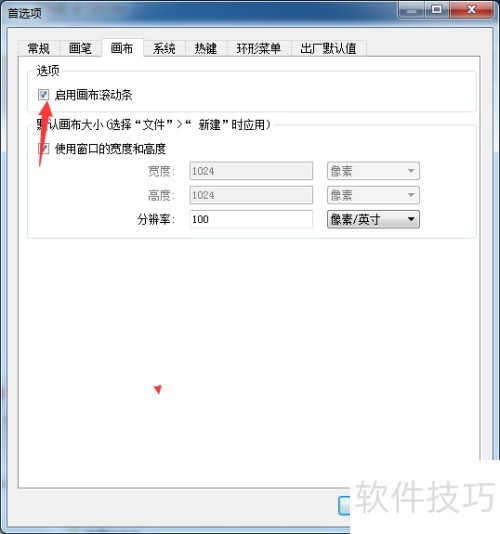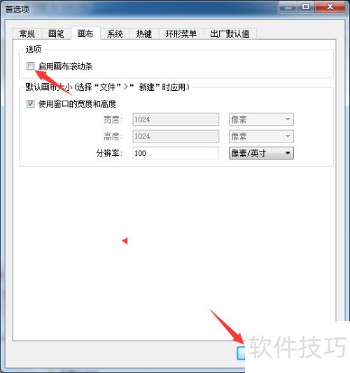- 取消勾选启用画布滚动条后,点击确认即可。