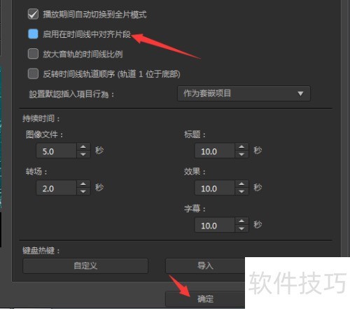 - 取消勾选在时间线中对齐片段后,点击确定即可。