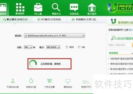 - 耐心等待U盘初始化完成,系统将自动执行插拔操作,具体过程所示。